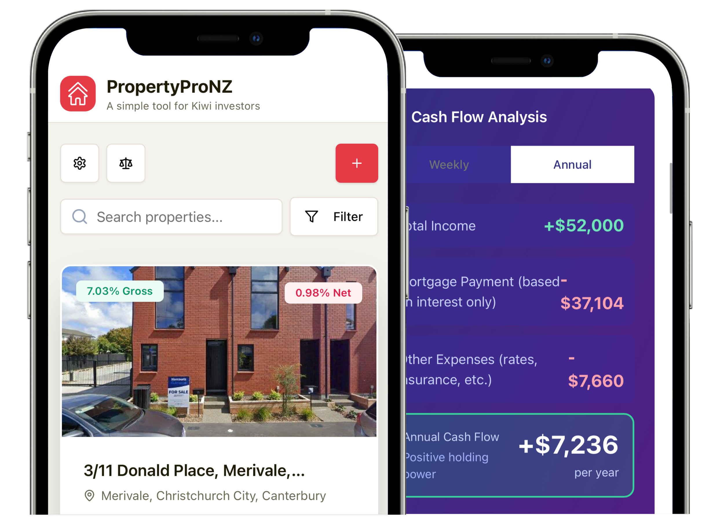 Compare properties, calculate returns, create scenarios — all in one simple NZ property investment tool designed to help you make smarter, faster decisions.